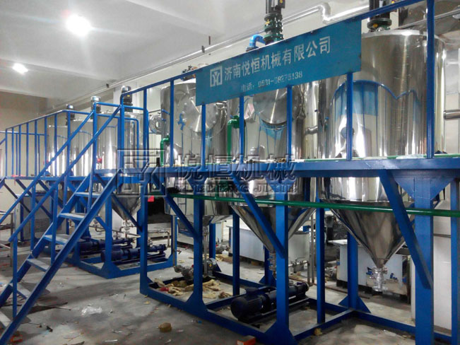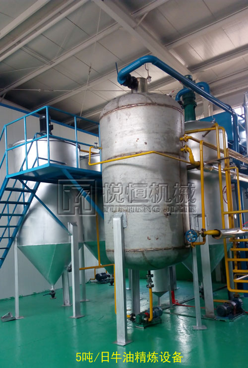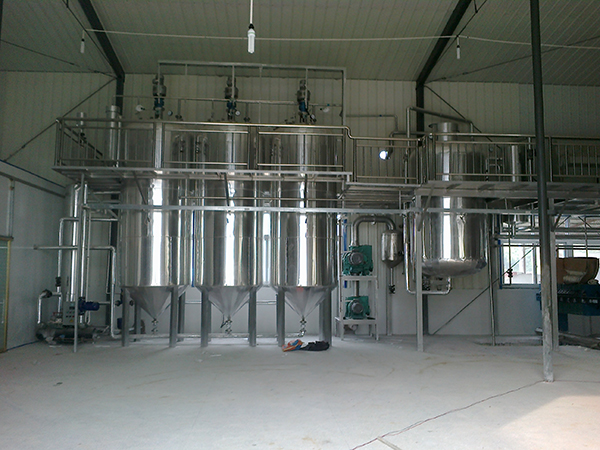 精煉油設備主要是對榨出來的毛油進行加工,使原料達到桶裝油標準(可以裝桶上超市買)或者國家高級食用油標準。植物毛油只是榨油或浸出的產物,它含有對消費者有害的物質。 這些物質有些是自然存在的,有些是在生產或儲存過程中產生的,對人們消費而言,這些物質必須仔細地去除。由于它們產生的根源不同,精煉須在不同的條件下分幾步進行。隨著毛油的不同,精煉工藝分:脫膠,脫酸,脫色,脫臭,脫膠等幾步,根據毛油的品種可采用其中的幾步或全部工藝。